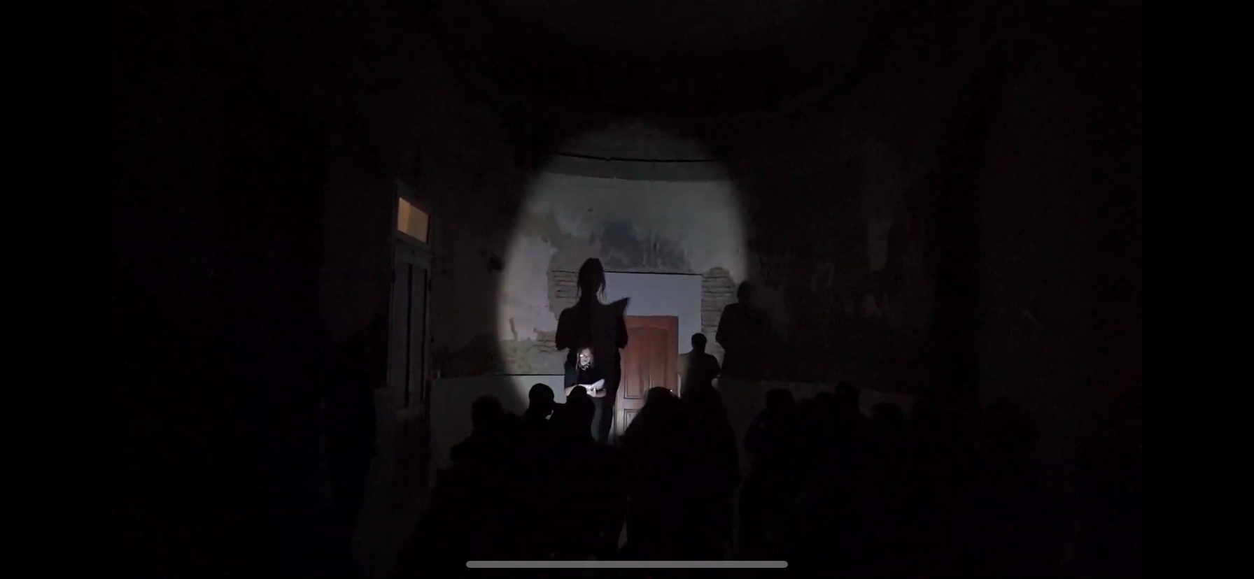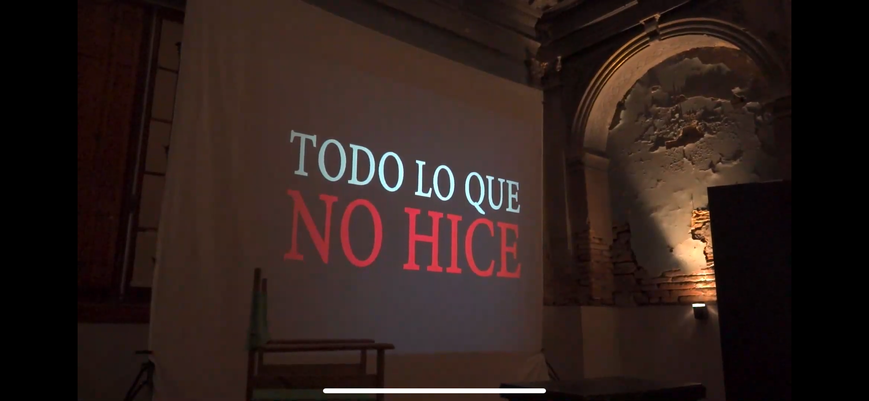 | Resumen: | TODO LO QUE NO HICE, es un nomonumento que desarrolla una performance/site-specific en la ex Capilla María Auxiliadora de Viedma, en el marco del proyecto "Nadie te va a hacer un monumento" (Proyecto 40- C - 1144). Aunque título que invita a la obra es "Degustación de un recuerdo y descripción de las distintas resonancias visuales provocadas durante un masticar intermitente en el sur del cuarto de hora de un siglo que ya ha pasado" , la identidad conceptual de la misma está determinada por el título TODO LO QUE NO HICE, el cual se proyecta sobre el cierre. La propuesta se articula como una apuesta sobre la demora y la fragmentación, estableciendo un diálogo entre la ficción y la exposición de sus mecanismos internos y externos, en diálogo con distintos lenguajes. El desarrollo de esta obra se basa en la cita y deconstrucción de algunas referencias clave, principalmente el inicio del texto de Luigi Pirandello, Seis personajes en busca de un autor , y la obra Todo lo que no hice de Ariel Barbieri (2010). Con una duración total de 72 minutos , la performance comienza con una "previa" de 20 minutos donde se instala la atmósfera de tempo quebrado, en la cual el público ingresa mientras los intérpretes arman una escenografía en miniatura a partir de un teatro de sombras y proyecciones refractarias sobre el techo de la excapilla, acompañados por variaciones e intervenciones sobre una canción de Nick Cave. Este preámbulo anticipa la demora que es el eje estructural de la obra. Tras la proyección del título formal, la escena se llena de una "demora" controlada, manifestada por la mostración de problemas técnicos con luces y una saturación de audio. El texto de Pirandello, que describe el escenario vacío y la preparación de un ensayo, es proyectado en off. Mientras esto ocurre, un objeto se cae generando no sólo un sonido sino una conmoción" , un evento que es resuelto sin reacción visible de los actores, lo cual refuerza la sensación de anulación de la expectativa. La obra intensifica la fragmentación al yuxtaponer el video del inicio de la obra de Pirandello filmado en el Centro Cultural de Viedma y audios de WhatsApp personales filtrados sobre las variaciones de la música de Nick Cave. Los actores, en una rutina de movimiento expresivo, buscan, por un lado, "sentir y mostrar lo que no se hizo con el cuerpo" en dos momentos contiguos que preparan el terreno para la revelación conceptual: la proyección de sombras en distintas escalas y una edición de ojos que suenan a fuego. El clímax de la obra llega con la proyección del título "TODO LO QUE NO HICE", transformando la demora escénica en una interpelación directa sobre lo omitido y lo irrealizado. Finalmente, la obra se extiende al público en el segmento post-obra: a la salida, se realiza un juego con la "Magdalena de Proust" , ofreciendo una magdalena por una historia acerca de lo que no se hizo. Este gesto, que cita a la obra Una historia por una torta frita de la artista Celeste Vénica, cierra la operación estética al anudar la reflexión conceptual de la demora con el registro de la vida no vivida. |